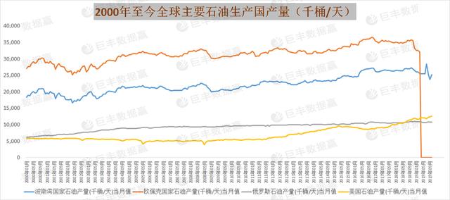 上图可以看到,从2000年至今,美国和俄罗斯就是全球重要的石油生产国,在2018年下半年,美国石油产量已经超过了俄罗斯,并且还在继续加大产量。