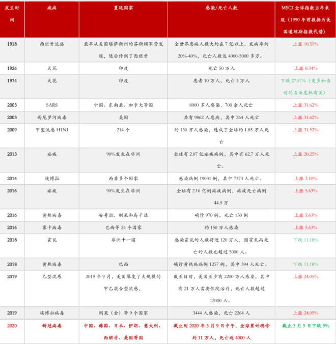 我们觉得,这可能是因为:历史上的这些疫情绝大部分是已知病毒,有明确的医疗手段可以应对。另外,大部分比较严重的疫情往往发生在非洲等发展中国家,这些国家经济体量比较小,对于全球经济的影响不大。