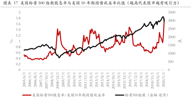 年期国债收益率),中国和美国股市相对于国债的估值处于历史上比较有吸引力的水平。