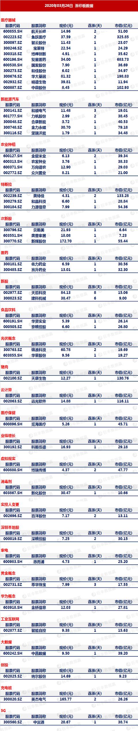 医疗器械板块走强:博晖创新、和佳股份、宝莱特、鱼跃医疗、华大基因、览海医疗、明德生物、复星医药涨停,理邦仪器、迪安诊断、戴维医疗、维力医疗、英科医疗、凯普生物、达安基因、万孚生物、三鑫医疗、奥美医疗等涨逾5%。口罩板块午后拉升,翰宇药业、国恩股份、搜于特、延江股份等拉升明显。