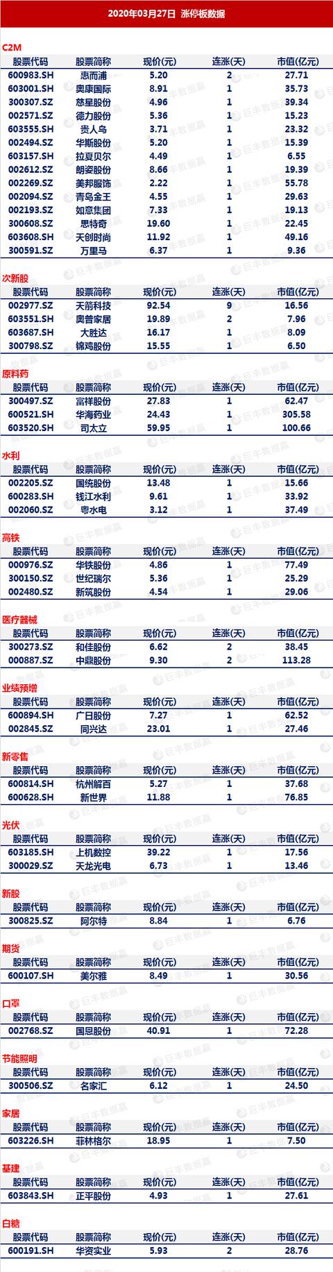 新基建板块再次发力,水利板块拉升:国统股份、钱江水利、安徽建工、粤水电涨停,三峡水利、葛洲坝、新界泵业、青龙管业、韩建河山等涨逾5%。高铁板块拉升:世纪瑞尔、华铁股份、中鼎股份、新筑股份涨停,三维股份、康尼机电、中国中车、中铁工业、晋西车轴、晋亿实业、中国铁建涨幅居前。