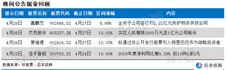 4月27日晚间上市公司十大重磅公告多股喜获涨停