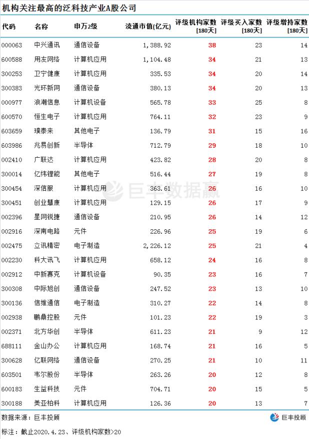 2020一季报预告已披露完毕,泛科技产业中表现较好的细分领域包括:苹果供应链、TWS无线耳机、半导体行业、光通信产业、会议信息化行业等。具体如下: