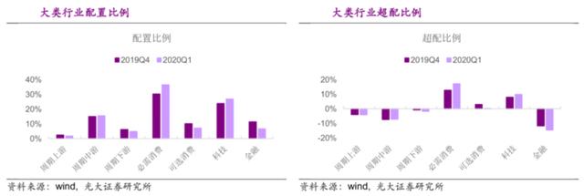 申万行业角度,2020年一季报基金持仓占比和超配比例环比提升幅度最大的5个一级行业 中有3个是泛科技产业,分别是:计算机(环比+3.33%)、传媒(环比+1.07%)、通信(环比+0.97%),另外两个是近期火爆的医药生物(环比+4.61%)、农林牧渔(环比+1.21%)。
