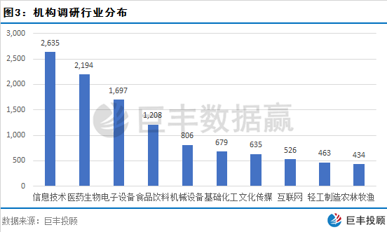 近期机构重点调研信息技术、医药生物、电子设备等板块。食品饮料、机械设备等行业调研频次较高。
