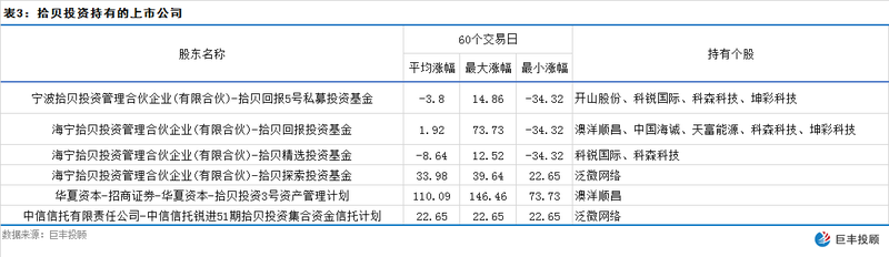 从拾贝投资的可查询资料看,由于分散的投资风格,最大持仓通常都不会超过组合的10%,在十大流通股东中较难找到拾贝的身影。
