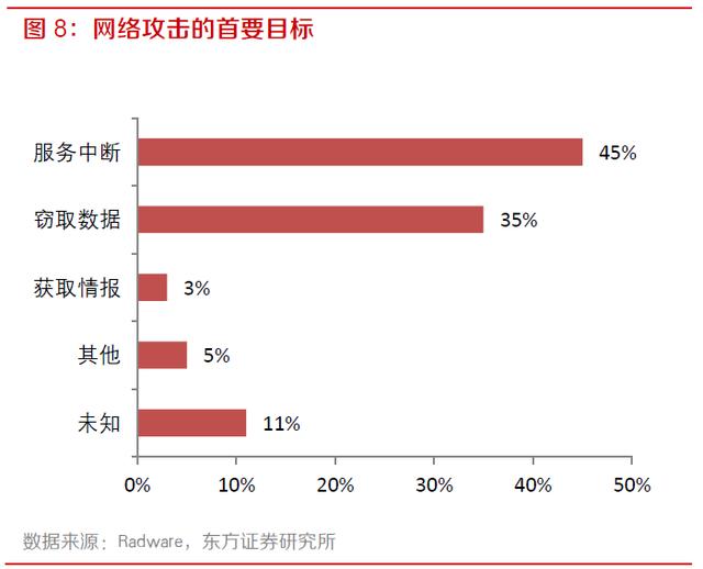 2018-2019 年全球应用及网络安全报告显示,受访企业表示遭遇网络攻击的主要目标是服务中断和数据窃取,分别占到45%和35%。而网络攻击不仅使得服务中断或生产力损失,还会导致数据泄露、信息丢失,并带来不良的客户体验。