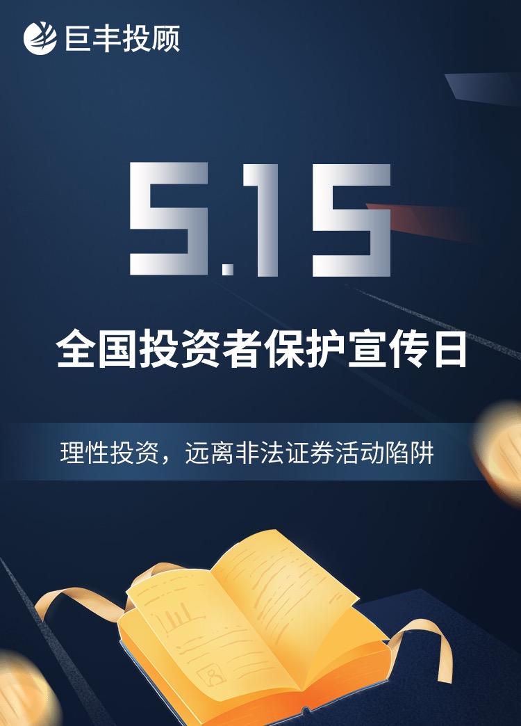 为积极响应证监会关于做好“5·15投资者保护日宣传活动”工作部署,不断增强投资者金融素养和风险防范意识,提升自我保护能力,学习贯彻新《证券法》保护投资者合法权益,在陕西证监局等单位指导下,巨丰投顾启动515投资者宣教活动。