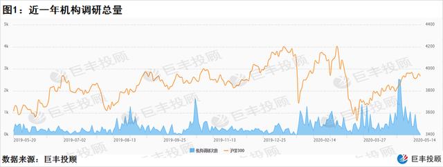 近期机构调研频次下降,调研总量回到较低水平,沪深300指数持续反弹走势,与调研量呈反向运动。