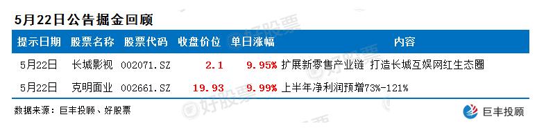 感兴趣的可查看好股票提炼22日盘前必读公告>>