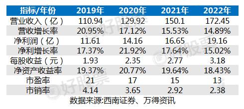 家居用品板块中,顾家家居自2016年10月上市以来,股价走势稳步上行。公司专业从事客餐厅及卧室家具产品的研究、开发、生产与销售,为家庭提供健康、舒适、环保的客餐厅及卧室家居产品。从上市三年多以来的净利润和营业收入来看,顾家家居是行业头部公司。