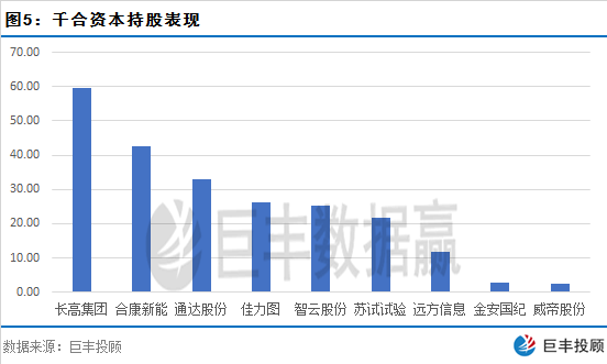 在可查到的千合资本的股票中长高集团、何康新能、同大股份、佳力图等股票都有不错的收益。