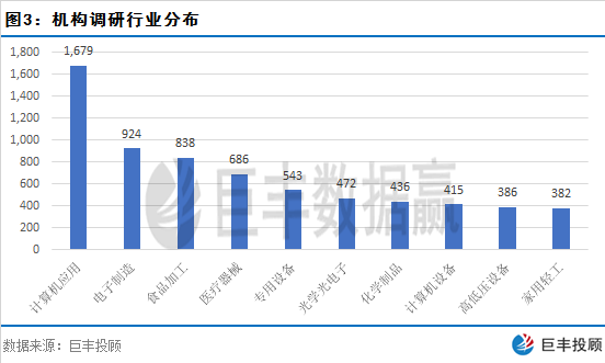 近期机构重点调研计算机应用、电子制造、食品加工等板块。另外,医疗器械、专用设备、光电等行业调研频次也较高。