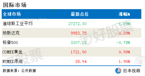美股周二收盘涨跌不一,纳指再创历史新高,盘中首破10000点关口。道指收盘下跌300.14点,跌幅1.09%,报27272.30点;纳指涨29.01点,涨幅0.29%,报9953.75点;标普500指数跌25.21点,跌幅0.78%,报3207.18点。美联储今起召开货币政策会议,周三公布会议决定。市场预计美联储不会调整基准利率,但将密切关注其对美债收益率的观点以及今年首度发布的经济预期。