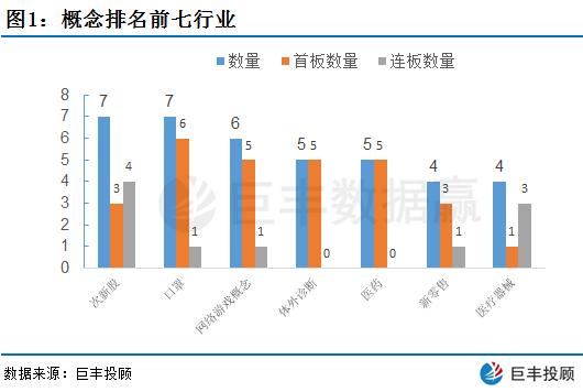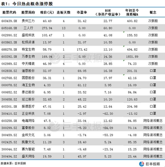次新概念的贵州三力、三人行等连板个股带领次新股走强,使得次新股热度得以延续,口罩概念受到周末疫情的影响,今天出现多只个股涨停,其中延江股份出现两连板,暂时以延江股份为口罩概念龙头。而热度较强的网络游戏概念,今天虽然热度较好,但是值得关注的是,目前只有凯撒文化出现连板,所以,凯撒文化能否连板,并且其他个股是否会出现连板,将影响网络游戏概念的热度。