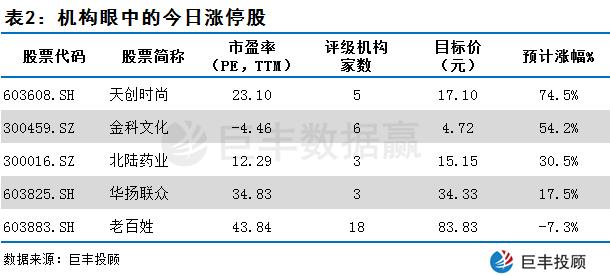 今天市场涨停股票多以首板为主,连板效应有所减弱,投资者需要关注今天首板的股票在明天的表现,是否能够延续涨停态势。在今天的涨停股中,部分个股之前已经受到了机构的关注,并且机构还给出了相应的目标中值,这些公司股价距离机构的目标价还有一定的上涨空间。