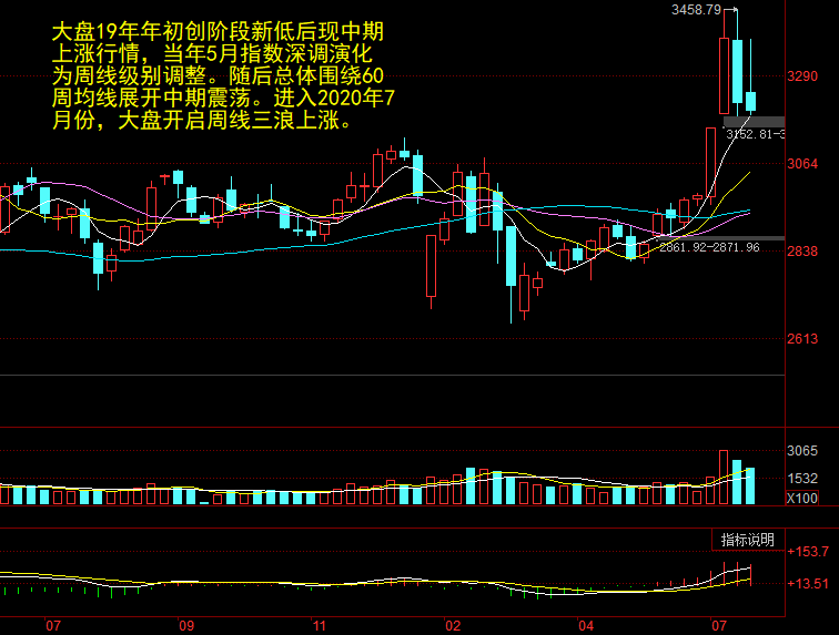 大盘19年第一季度的上涨行情转变为围绕60周均线的中期震荡行情,现进入周线第三浪上涨行情。