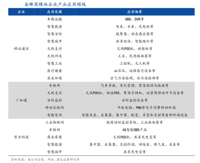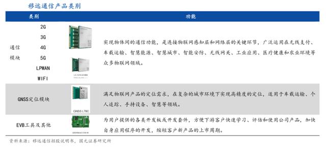 公司主要产品包括 GSM/GPRS(2G 类别)系列、WCDMA/HSPA(3G 类别) 系列、LTE(4G 类别)系列、NB-IoT系列等蜂窝通信模块,以及 GNSS 系列定位模块系列、EVB 工具系列等。公司产品主要应用于无线支付、车载运输、智慧能源、智慧城市、智能安防、无线网关、工业应用、医疗健康和农业环境等领域。当前5G的基础设施仍在建设过程中,5G系列模块的放量仍需时日。
