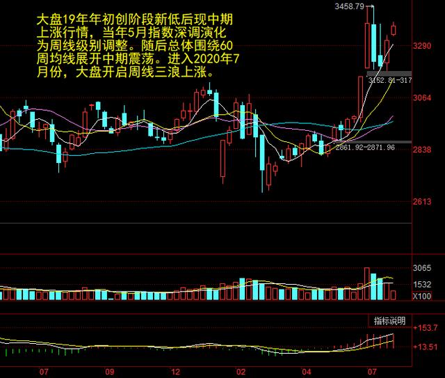 大盘19年第一季度的上涨行情转变为围绕60周均线的中期震荡行情,现进入周线第三浪上涨行情。
