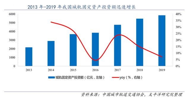 2019年我国城轨固定资产投资额达到5959亿元,再创历史新高。根据前期已开工项目及已批复项目来看,未来三年将是通车高峰期,预计年均城轨固定资产投资额有望超过6000亿元。