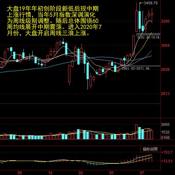 大盘19年第一季度的上涨行情转变为围绕60周均线的中期震荡行情,现进入周线第三浪上涨行情。