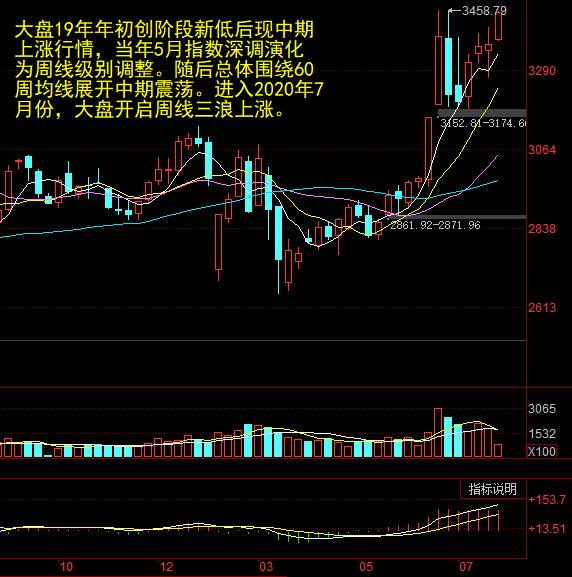 大盘19年第一季度的上涨行情转变为围绕60周均线的中期震荡行情,现进入周线第三浪上涨行情。
