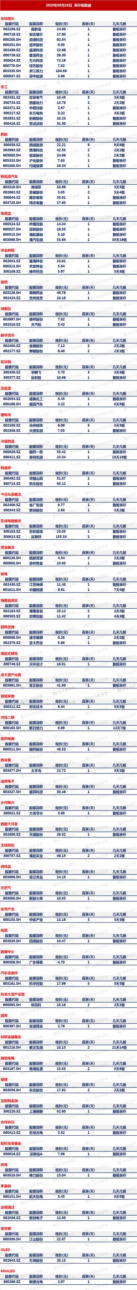 巨丰投顾认为近期金融股与科技股走势分化导致7月构筑的高位箱体突破失败,上市公司股东减持,美国打压中国科技公司,以及7月社会融资数据不及预期,加剧了市场调整。连续调整6天后,周五大盘回踩箱体底部,金融股站出来护盘。周一,金融股轮番走强,沪指收复3400点,创业板及时补量则化解了技术面的风险。周二,市场冲高回落,金融股回调,钢铁、煤炭、汽车、农业、食品、酿酒等表现强势,但向上突破的力量不足。中报行情展开,流动性驱动的行情告一段落,市场重新聚焦业绩,但预计不会持续太久。建议逢低关注国资改革、新能源汽车、新基建等景气度向上以及具备估值优势的板块,避免追涨杀跌操作。