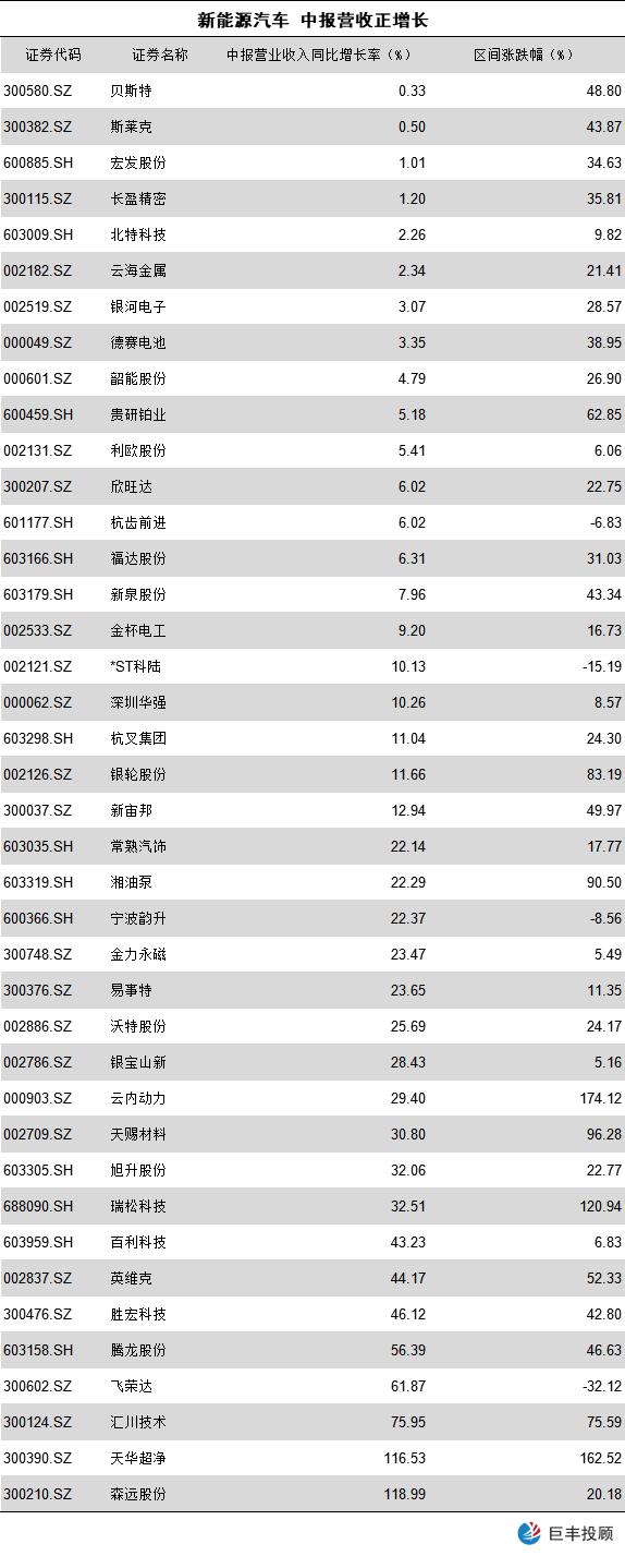 截至8月20日,已经有85家新能源汽车概念股公布业绩,其中40家营收同比实现增长。营收转正,相比起业绩增长,更能反映出行业的状况。