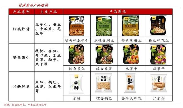 甘源食品是国内领先的豆类休闲食品企业。以籽类休闲食品为起点,后产品拓展至坚果果仁和谷物酥类休闲食品。公司集研发、生产、销售为一体,拥有江西萍乡、河南安阳两大生产基地,2016年品牌“甘源”被中国副食品流通协会授予“2016年度中国食品行业创新十佳品牌”,已成为籽类休闲零食品类的领军品牌。具体来说: