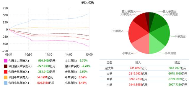 根据东财统计,截止收盘沪深两市呈现资金净流出状态,当日沪深两市资金净流出590.95亿元,关注巨丰投资资讯公众号(jf-hxnc),专业投资顾问坐阵直播间为您问答疑解惑!今日超大单净流出227.94亿元,大单净流出363.01亿元,中单净流入54.13亿元,小单净流入536.82亿元。