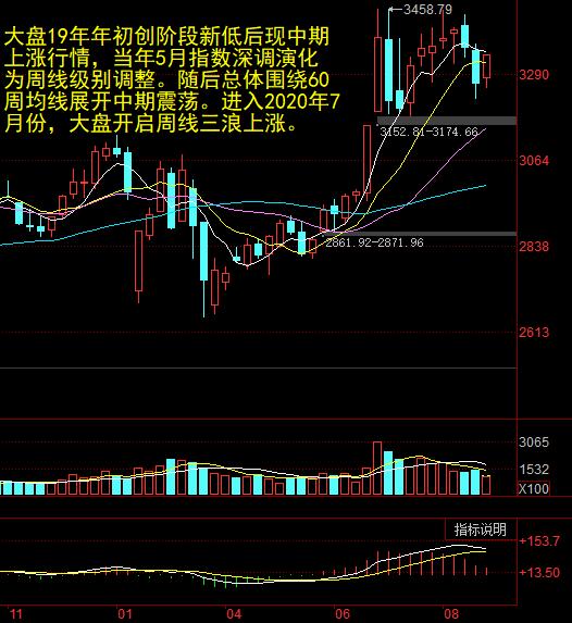大盘19年第一季度的上涨行情转变为围绕60周均线的中期震荡行情,现进入周线第三浪上涨行情。