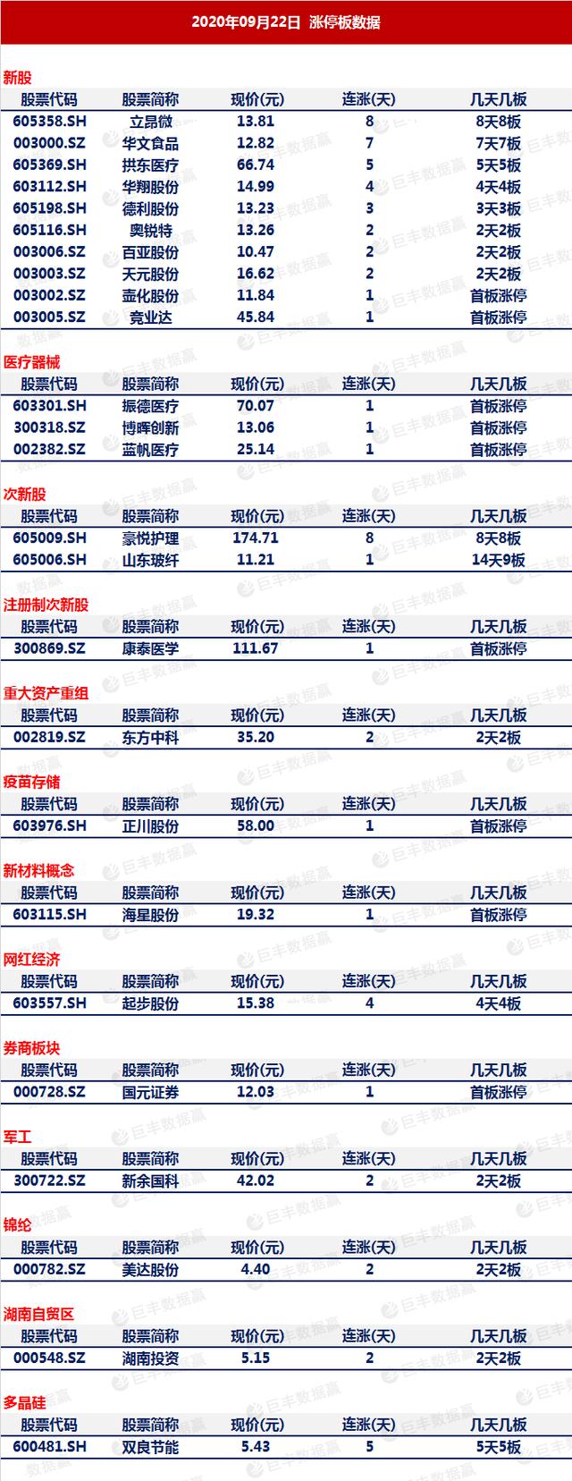 今日两市涨停板家数较上个交易日减少8家,跌停板家数比上个交易日增加1家。涨跌停数据显示今天市场情绪较上一个交易日出现回落。同花顺数据显示,今天涨停板主要集中在医疗器械等板块,市场题材热度极差,赚钱效应较差。