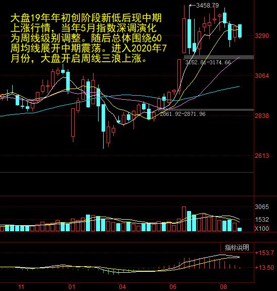 大盘19年第一季度的上涨行情转变为围绕60周均线的中期震荡行情,现进入周线第三浪上涨行情。