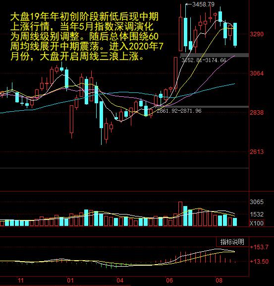 大盘19年第一季度的上涨行情转变为围绕60周均线的中期震荡行情,现进入周线第三浪上涨行情。