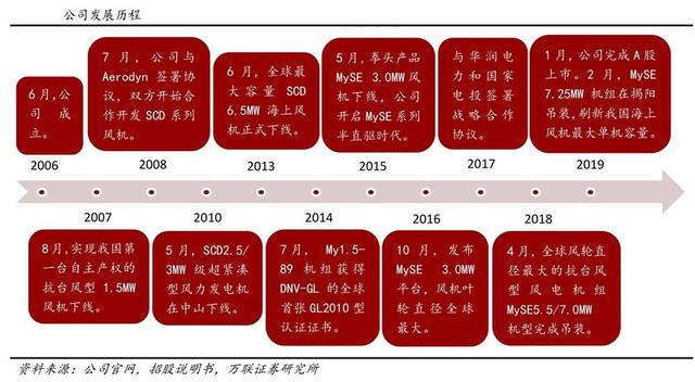 2017年至今,成功研制全球风轮直径最大抗台风型风电机组——明阳智能MySE5.5/7.0MW、全球单机容量最大半直驱抗台风型 8-10MW 海上风机,公司海风机组技术已达到全球顶级水平。