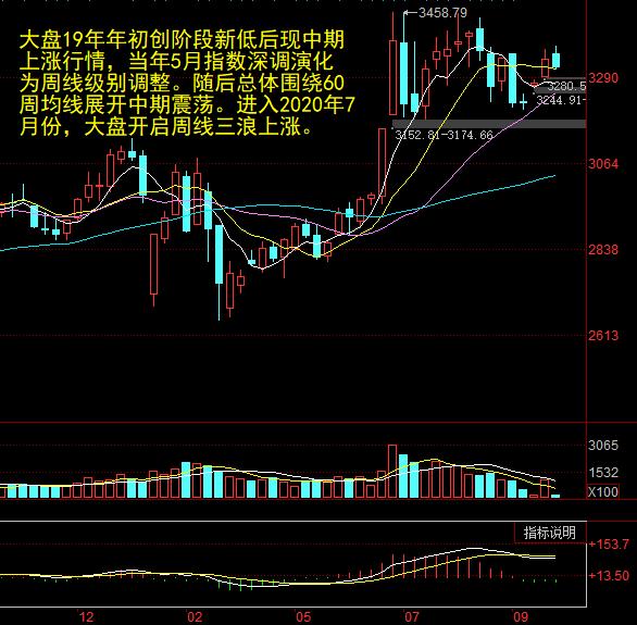 大盘19年第一季度的上涨行情转变为围绕60周均线的中期震荡行情,现进入周线第三浪上涨行情。