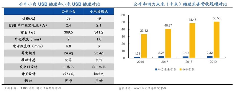面对小米的竞争,公牛集团迅速改良设计,发布公牛小白狙击小米插座,并且定价48元,成功压制小米插座,后续公牛小白价格涨到59元以后依然保持巨大优势,2017年后小米插座代工企业动力未来营收增长停滞,而公牛集团在高基数下依然保持可观增速。