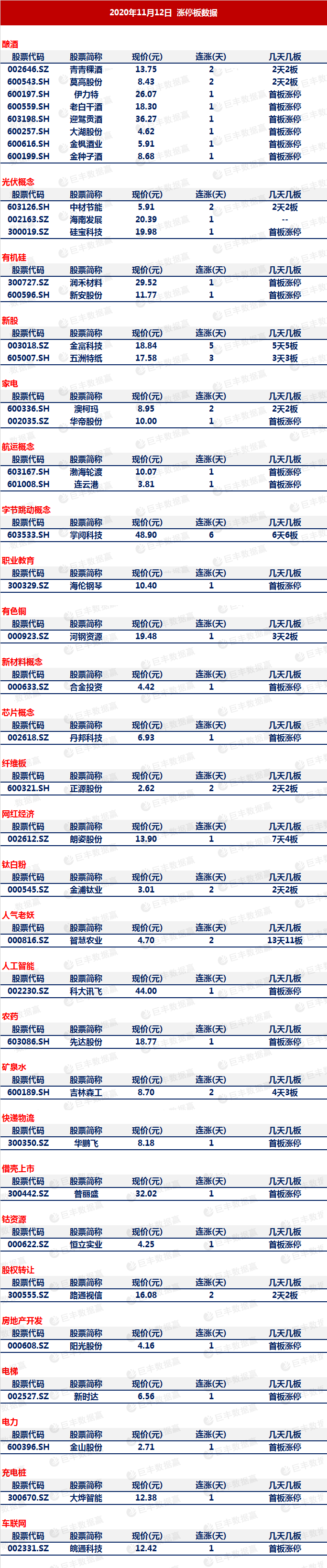 酿酒行业大涨5%:金种子酒、青青稞酒、莫高股份、会稽山、金枫酒业、老白干酒、迎驾贡酒、古越龙山纷纷冲击涨停,伊力特、惠泉啤酒、口子窖、金徽酒、顺鑫农业、珠江啤酒、ST通葡、ST舍得、张裕A、兰州黄河涨逾5%;酒鬼酒、五粮液、洋河股份表现低迷,酿酒板块分化,投资者切莫轻易追高。