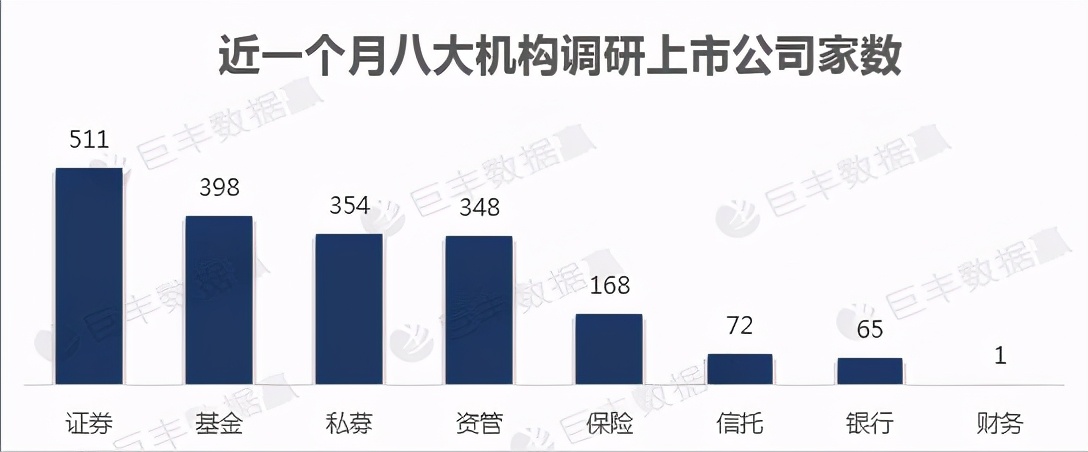 从机构活跃度来看,本月证券公司调研最为活跃,共调研511次,其次是基金公司,调研次数达到398次,另外私募和资管调研数据也比较靠前,分别为354次和348次。