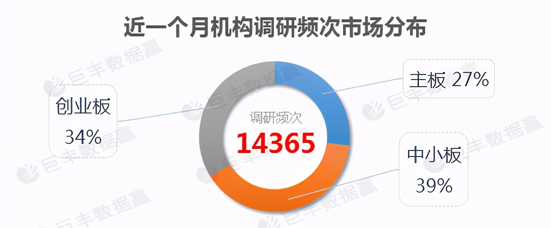 从板块上看,近一月机构调研频次最多的是中小板上市公司,占比为39%,其次是创业板上市公司,占比34%,最后是主板上市公司,占比为27%。