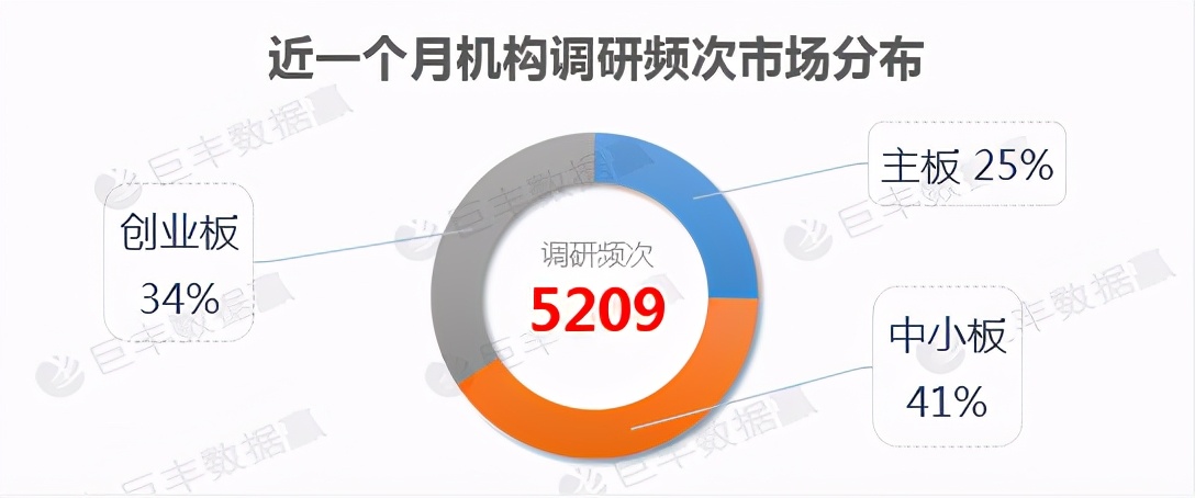 从板块上看,近一月机构调研频次最多的是中小板上市公司,占比为41%,其次是创业板上市公司,占比34%,最后是主板上市公司,占比为25%。