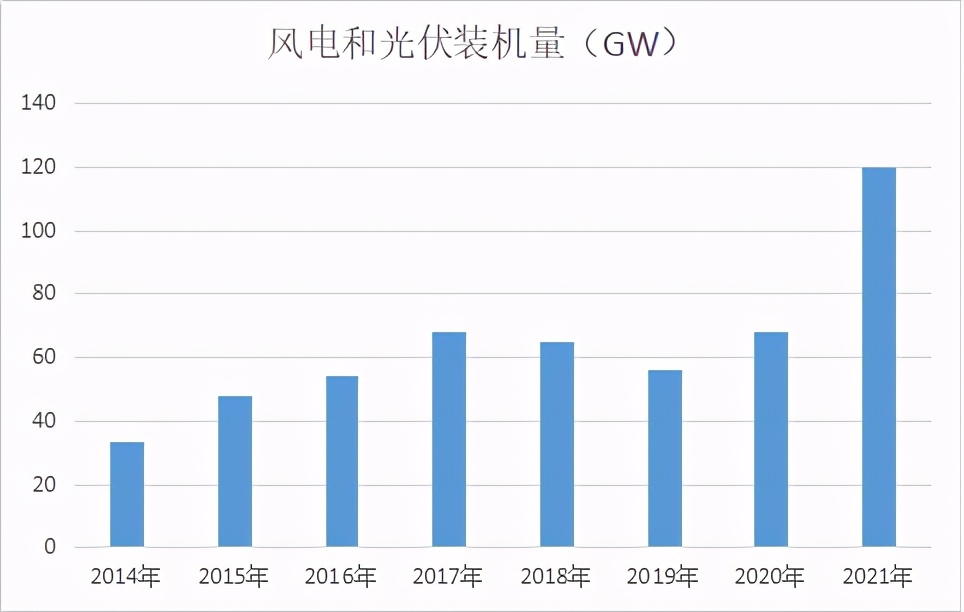 数据显示,近年来我国风电、太阳能发电装机始终保持迅猛增长态势。2014—2019年,全国风电和太阳能发电合计新增规模分别为3300万、4800万、5400万、6800万、6500万、5600万千瓦,2020年1—10月新增约4600万千瓦。虽然年度新增规模最高达到了6800万千瓦,但这一数字仍低于7400万千瓦的未来10年平均增速要求,也大幅低于1.2亿千瓦的2021年发展目标。