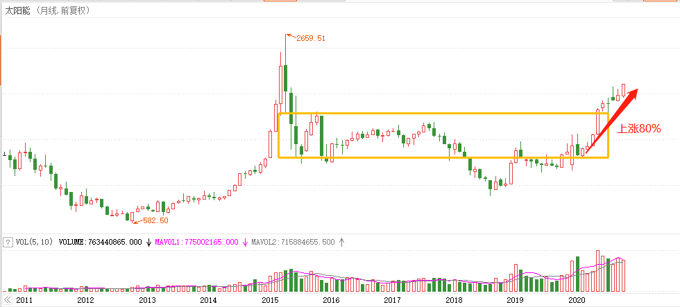 太阳能板块指数,从3月低点上涨80%!突破了2015年以来的高点!