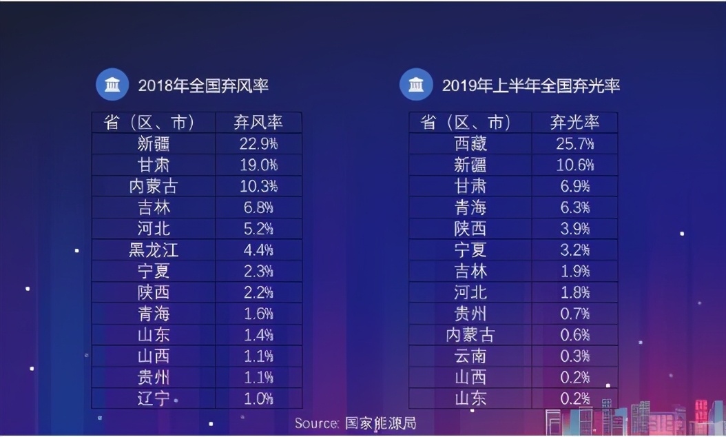从能源局数据可知,新能源电力的消纳正处在瓶颈期,前几年弃风率一直在15%左右,2018年弃风率下降到7%。光能弃电率前几年10%左右,2018年下降到3%。不过这两个数据有迷惑性,3%、7%数字只是各省平均值。风电大省新疆、甘肃、内蒙弃风率仍然非常高,光电大省西藏、新疆弃光率也非常高。光伏和风电的不稳定性,是电网消纳的最大难题。