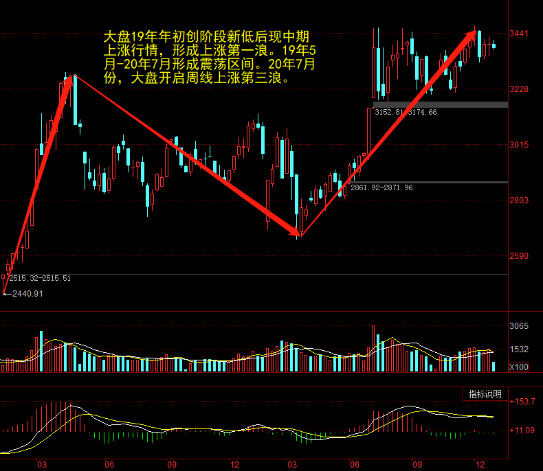 大盘19年第一季度的上涨行情转变为围绕60周均线的中期震荡行情,现进入周线第三浪上涨行情。