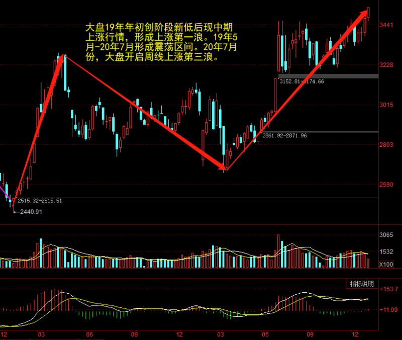 大盘19年第一季度的上涨行情转变为围绕60周均线的中期震荡行情,现进入周线第三浪上涨行情。