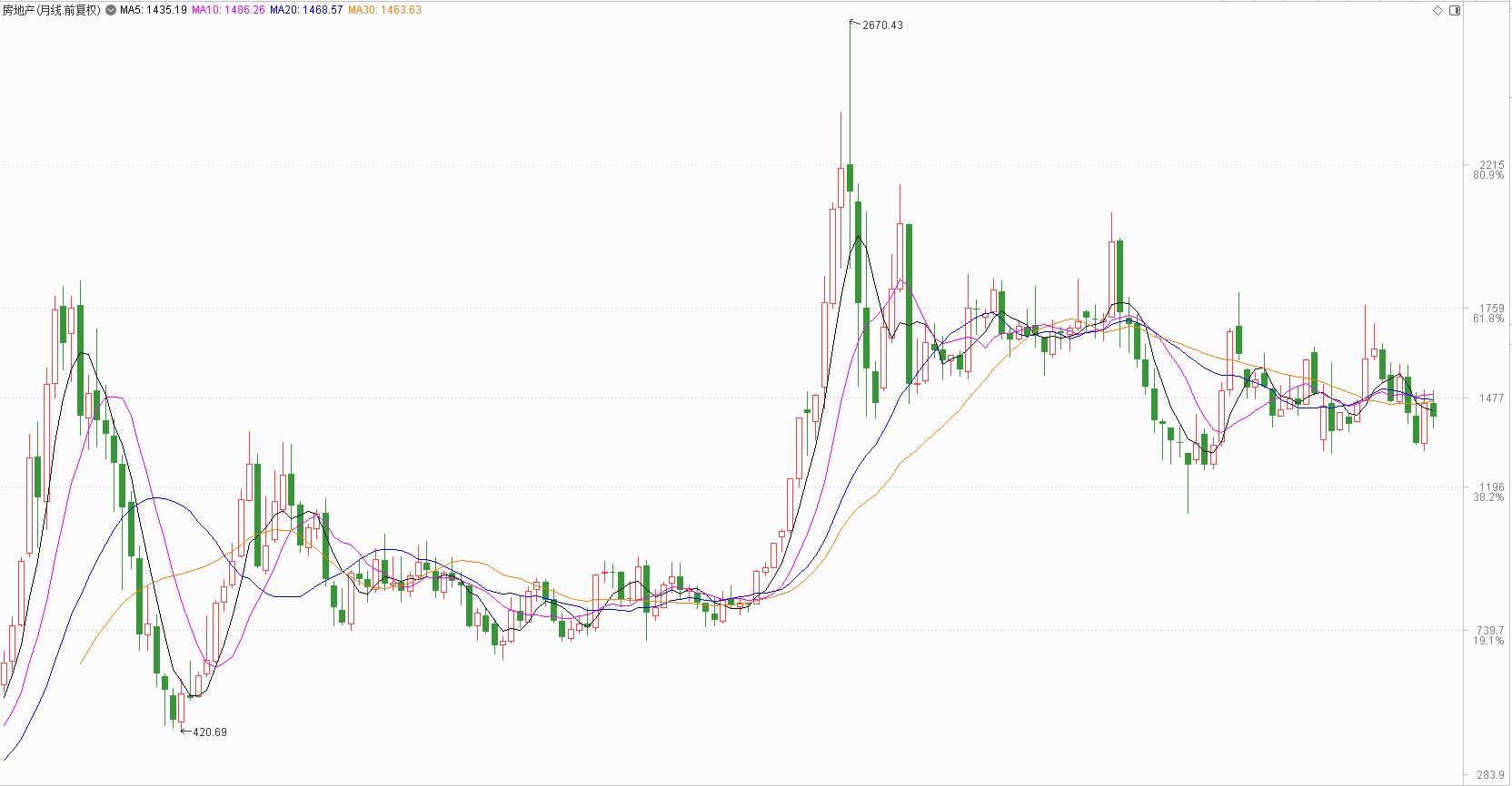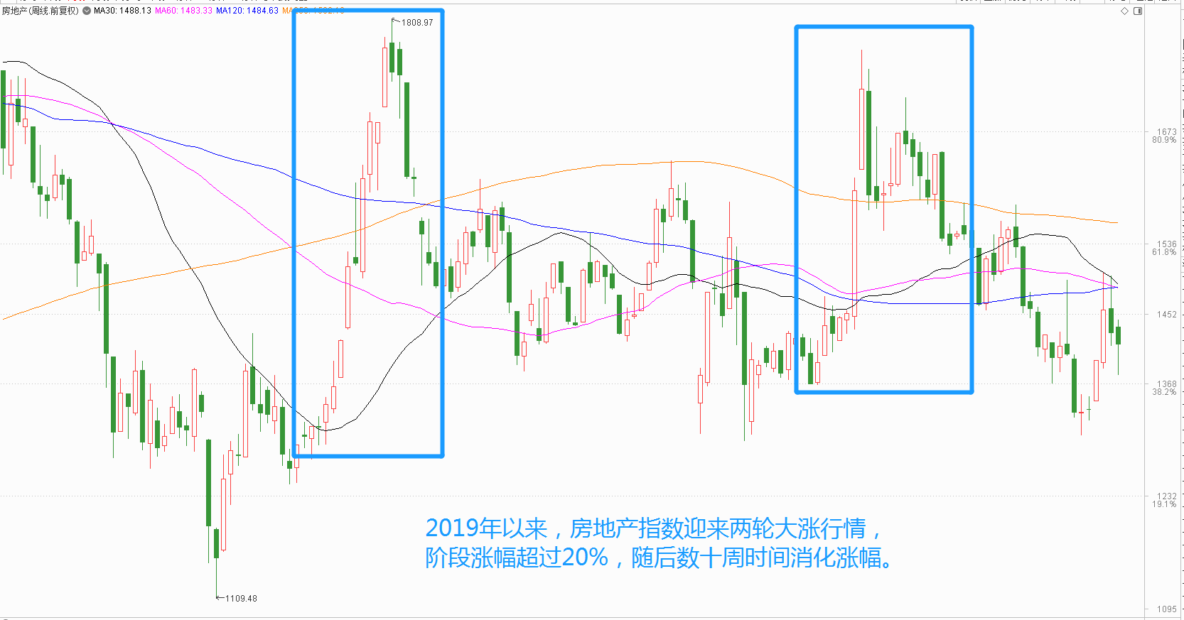 本文将通过复盘房地产板块周线走势,来分析这种说法是否站得住脚,这对于投资来说有重要指导意义,看其是否可当做大盘的反向指标,并提前做好调仓换股及防范风险。