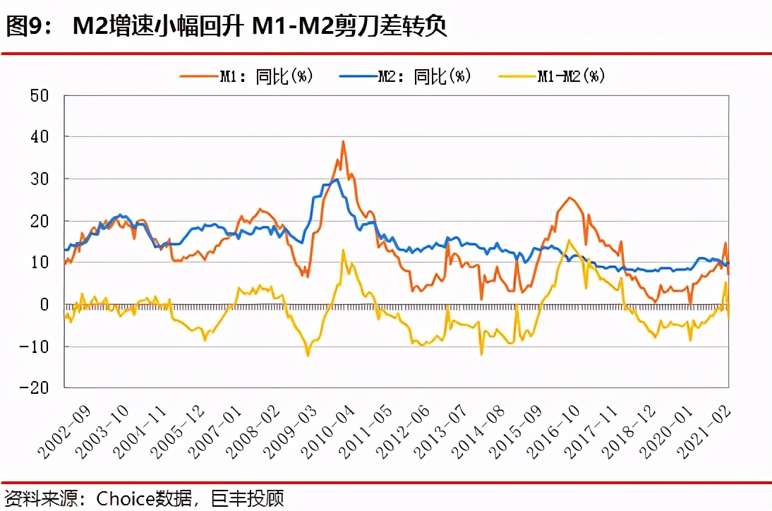 一方面, 社融-M2 剪刀差在 2 月有所收窄, 反映出资金供给相对充裕,广义流动性缺口缩窄,银行负债端压力下降。 另一方面, M2-M1 剪刀差再度扩大, 但 M1 下降主要由于基数效应, 并不意味着企业的经营预期下降,未来经济内生动能有望继续增强。有色疯狂爆发能持续多久?主力机构底牌曝光!关注巨丰投顾(ID:jfinfo)公众号/下载好股票APP,紧急订阅“读研报抓牛股”专栏,享受专属优惠!超级龙头标的分析研报等你get!
