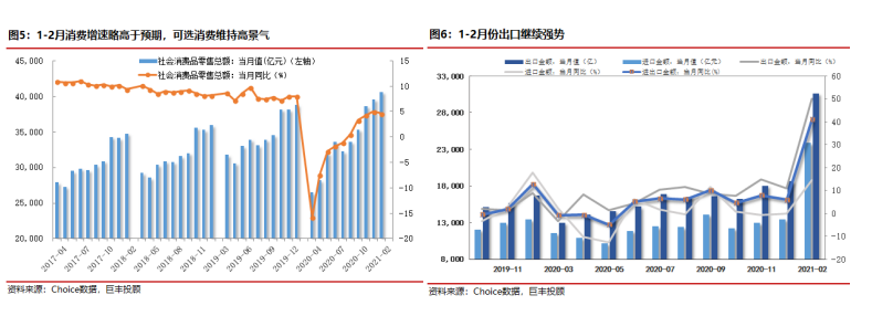 1-2月出口保持强劲,主要原因有几大方面包括低基数影响;全球经济复苏对我国出口的支撑;海外房地产周期的带动等。