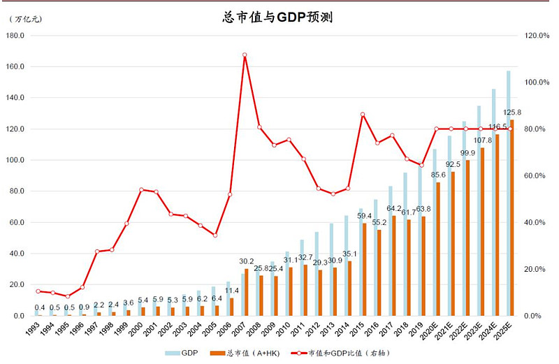 那么未来,在国内大类资产中,最好的投资极有可能是股票。目前A+H股的总市值和中国GDP之比约为80%,这一比例远远低于发达国家。
